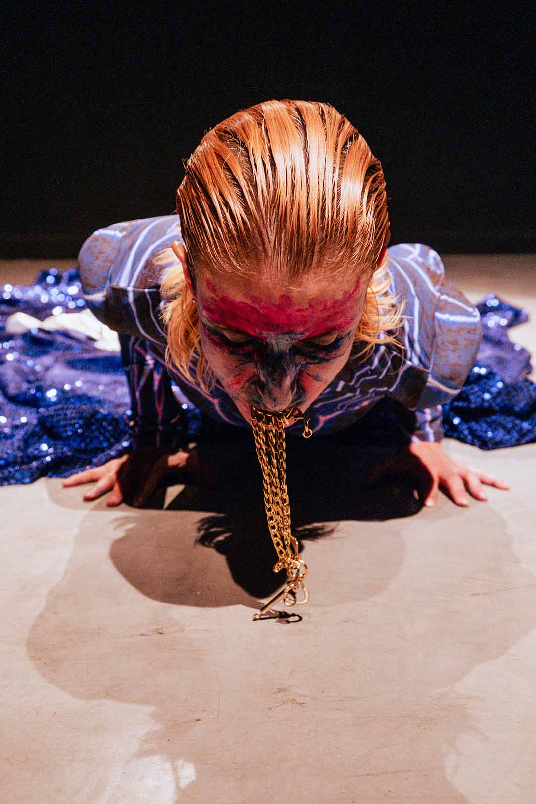 DRAG (ON), de Mariana Tengner Barros, é uma performance-rito onde o corpo atravessa estados alterados entre o xamânico e o drag. Entre mitologias aquáticas e forças invisíveis, o gesto torna-se transe e celebração da diferença. Uma ode às águas e ao poder transformador do imaginal.