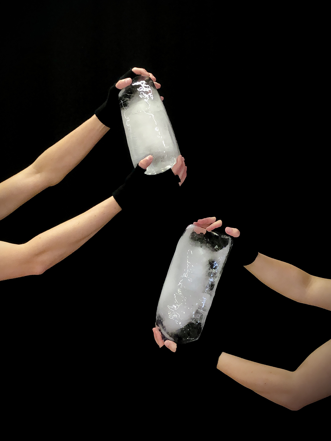 Dois corpos que se movem numa paisagem de gelo, partindo de uma tentativa.