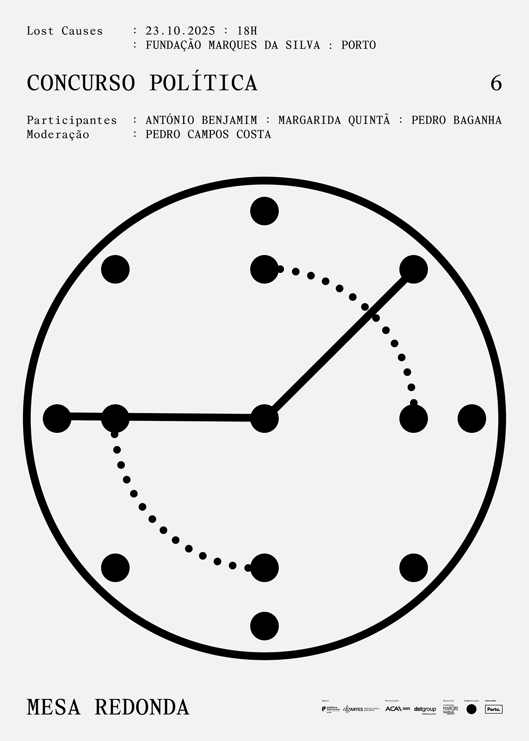 A exposição e o lançamento do livro têm data prevista para o dia 22 de novembro de 2025 na Fundação e Instituto Marques da Silva (FIMS). Até lá, acontecem, em vários locais, conversas em torno do projeto. A próxima mesa redonda "Concurso Política" terá lugar no dia 23 de outubro de 2025, na FIMS, às 18h, no Porto.