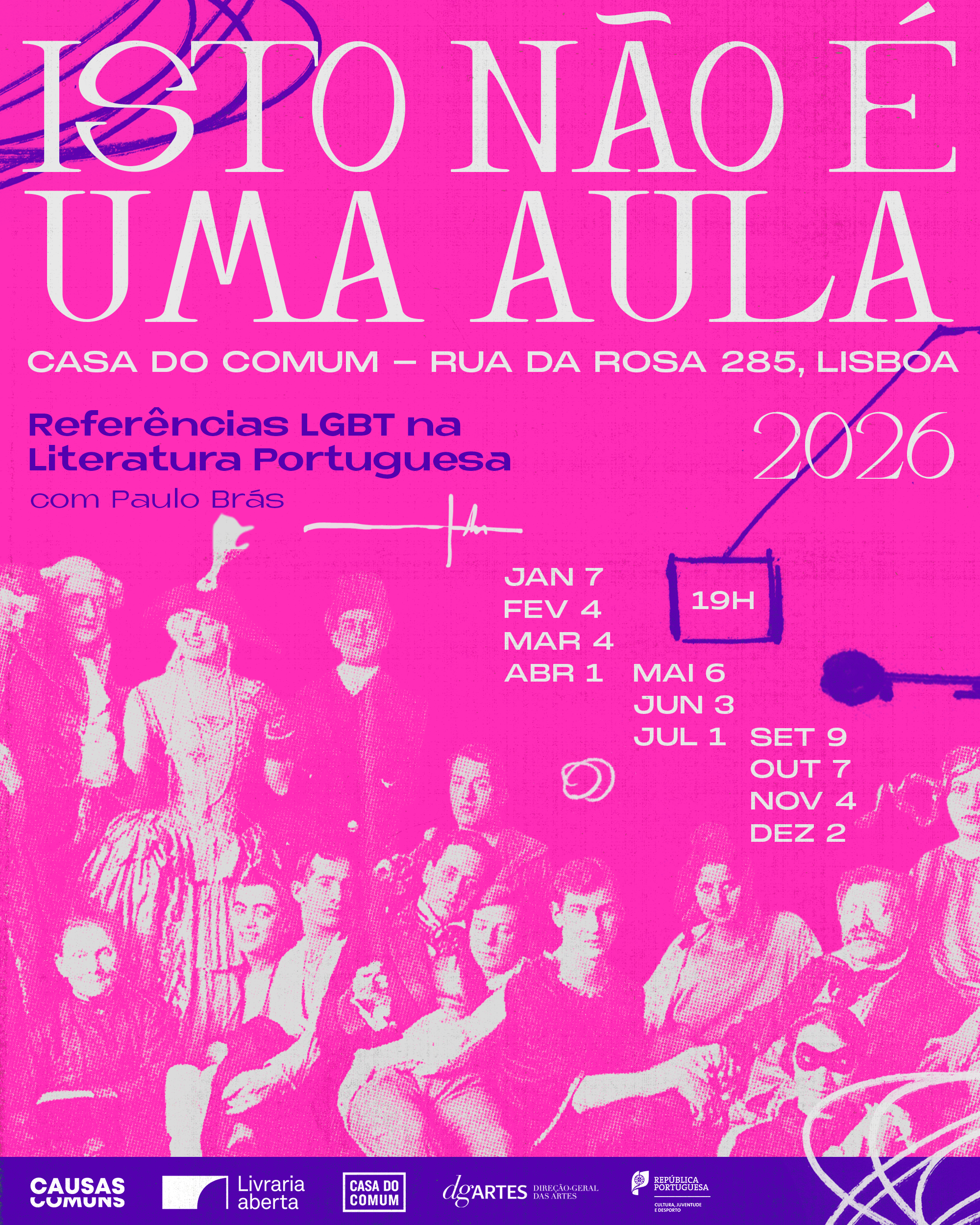 Leituras e conversas a partir de textos de autorias desconhecidas e canónicas, do século XIX à atualidade. Os textos só são revelados no início de cada sessão, lidos em voz alta por quem quiser e comentados coletivamente. A leitura serve de ponto de partida para a conversa. Uma parceria com a Livraria Aberta, na Casa do Comum, com mediação de Paulo Brás.