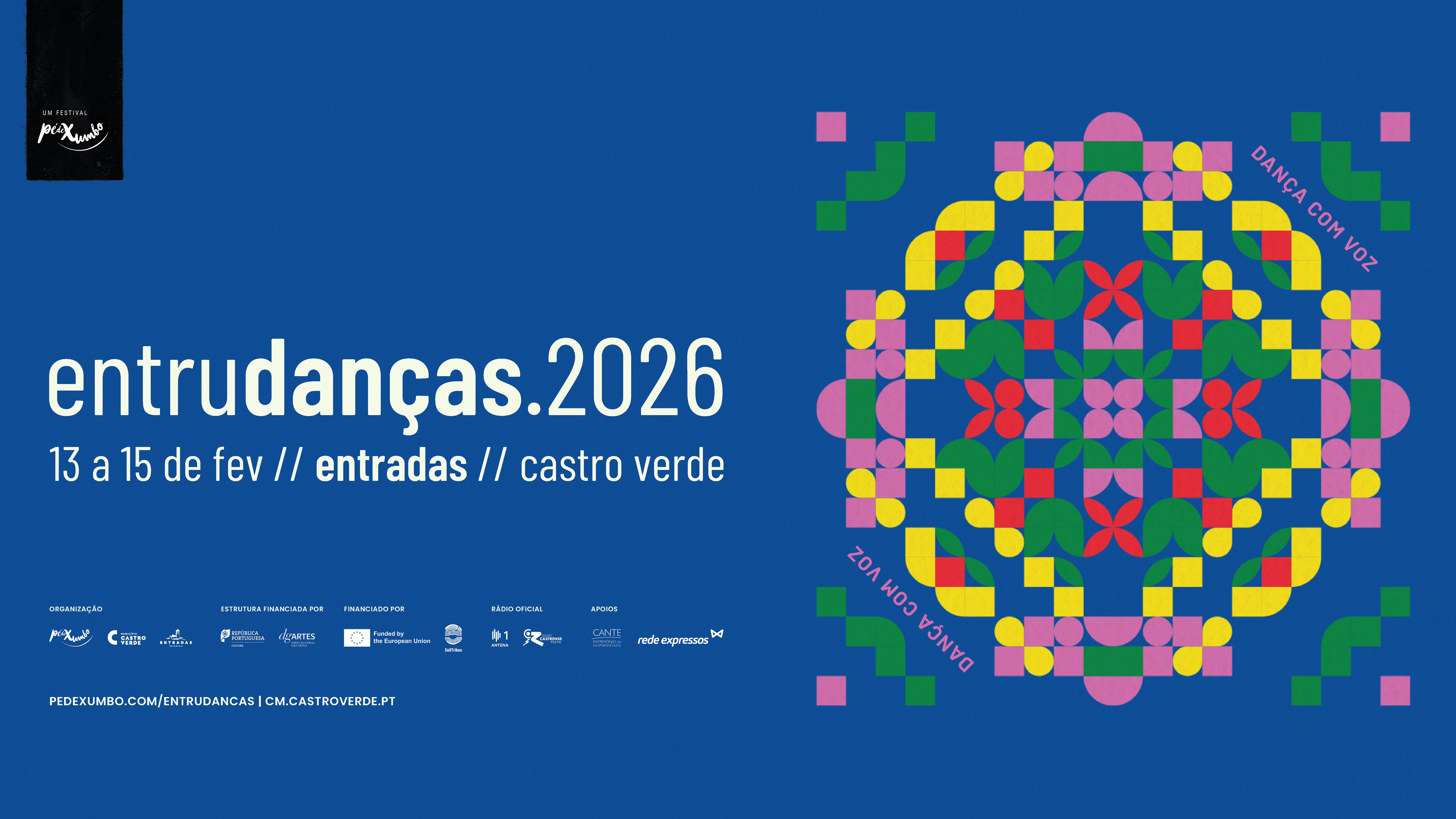 Em 2026, vamos dançar com voz, inspirados no tema anual da PédeXumbo – Dança com Voz. Continuando a reflexão que temos feito, nos últimos anos, sobre estar no momento presente, voltamos ao lugar onde somos felizes, no início de cada ano: o Entrudanças, uma experiência para estar, conviver, interagir e compreender onde, como e com quem nos cruzamos. Um ano para exaltar a Dança como voz do corpo; como instrumento de comunicação que ultrapassa barreiras físicas, linguísticas e culturais, para que diferentes pessoas comuniquem e expressem emoções, pensamentos, histórias, sabores, músicas, coreografias; a dança como voz universal, que lança e responde a perguntas, que cria e manifesta, que lança um corpo vocal para o espaço público! Dancemos para nos fazermos ouvir!