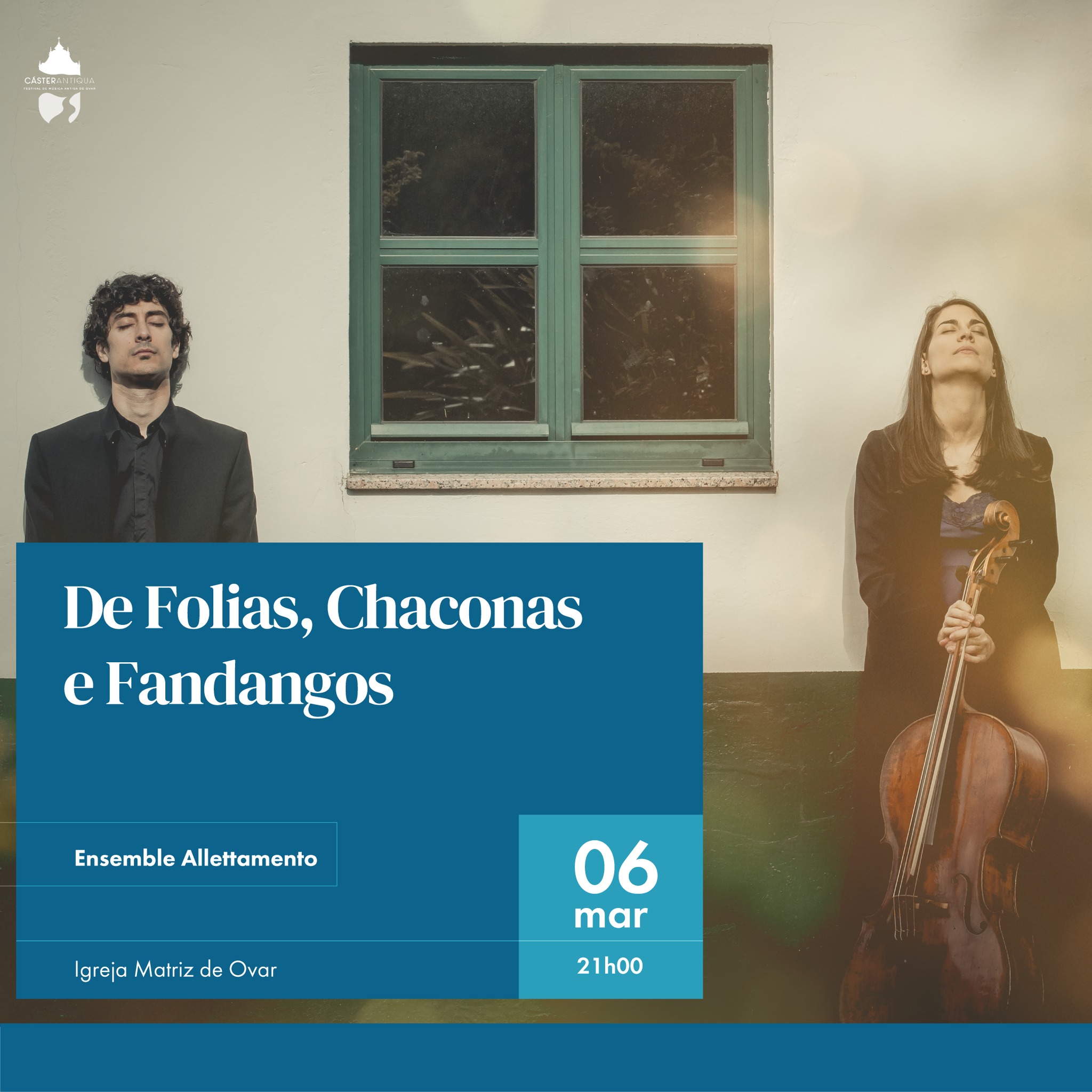 A cidade de Ovar acolhe, até 8 de março, a 2ª edição do CásterAntiqua – Festival de Música Antiga de Ovar, propondo uma viagem pelos séculos XVI, XVII e XVIII através de uma programação musical que reúne vários artistas e agrupamentos nacionais (Musurgia Ensemble e o MedEnsemble) e internacionais (William Carter, New Collegium e Ensemble Alletamento). A iniciativa decorre em vários espaços (Igreja Matriz, Capela do Calvário, Museu Júlio Dinis, Centro de Arte de Ovar).