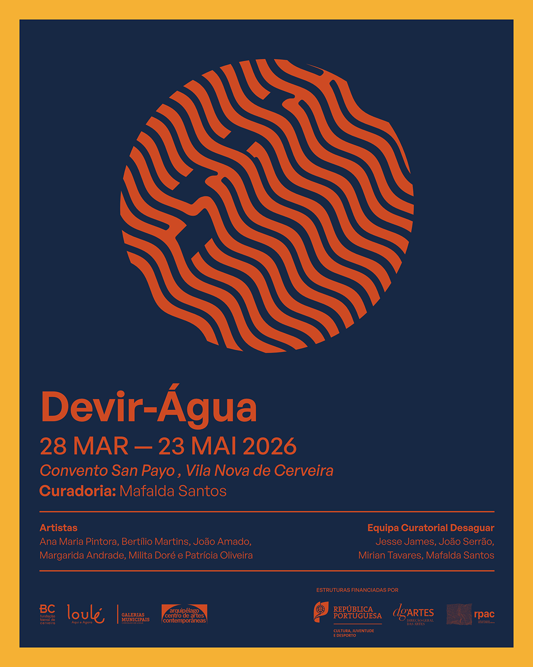 A curadoria é de Mafalda Santos, com a colaboração da restante equipa curatorial do projeto – João Serrão e Mirian Tavares (Loulé) e Jesse James (Açores) – e assinala um percurso que atravessou diferentes territórios e regimes hídricos. Segundo a curadora da exposição, Mafalda Santos, “a exposição assinala o último momento da iniciativa, não como encerramento, mas como estado de transformação. Depois de os artistas percorrerem Vila Nova de Cerveira, São Miguel e Loulé – territórios atravessados por diferentes regimes hídricos e memórias sedimentadas – esta mostra situa-se num tempo intermédio, onde experiências, matérias e narrativas permanecem em circulação”.