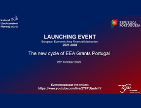 No dia 28 de outubro, a partir das 9h30, realiza-se o evento de lançamento do próximo Mecanismo Financeiro que marca um novo ciclo dos EEA Grants em Portugal e uma de uma nova etapa de cooperação entre Portugal, a Noruega, a Islândia e o Liechtenstein.