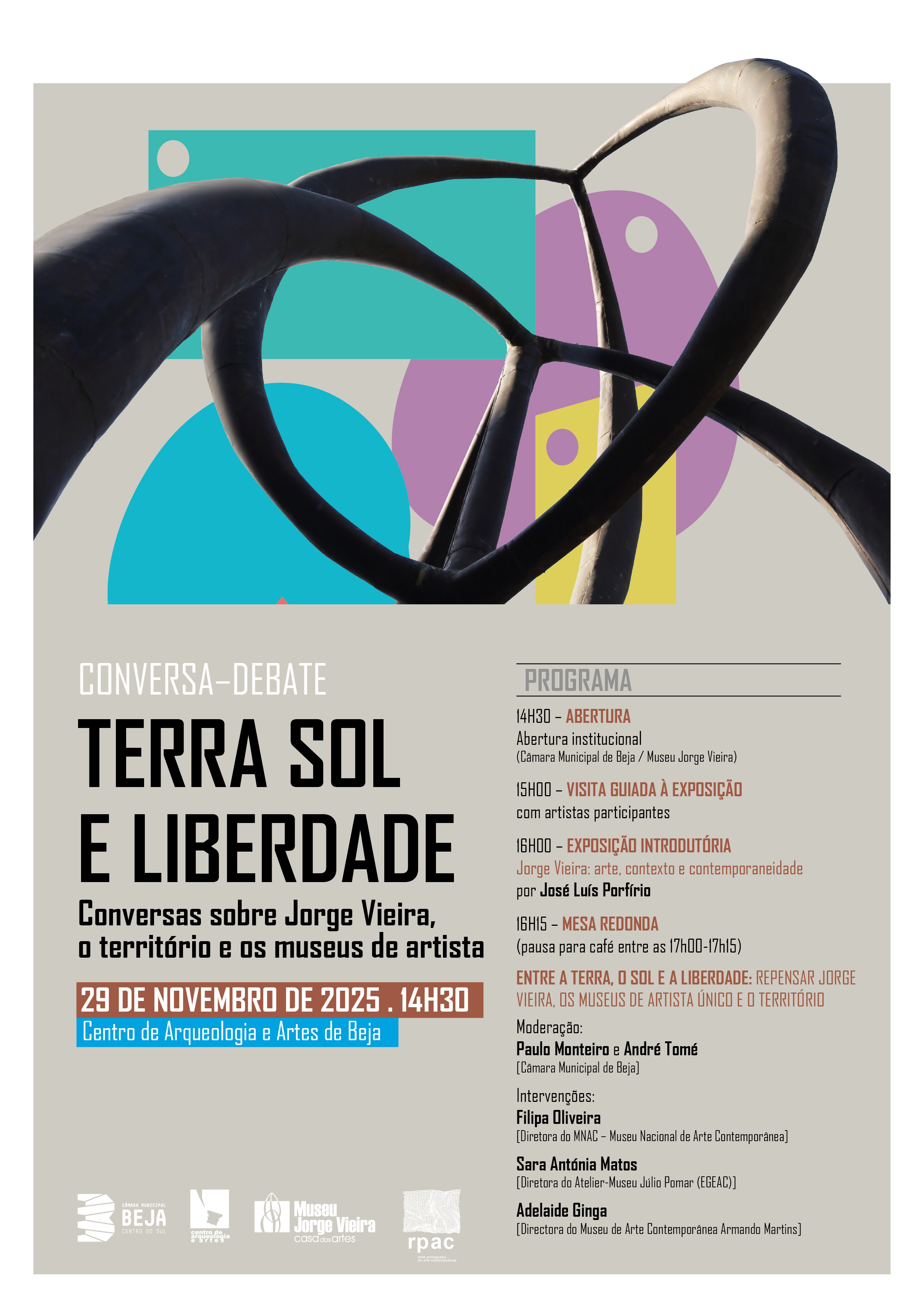 A Câmara Municipal de Beja e o Museu Jorge Vieira – Casa das Artes organizam, no próximo dia 29 de novembro, a conversa-debate "Terra Sol e Liberdade: Conversas sobre Jorge Vieira, o território e os museus de artista", uma iniciativa integrada nas comemorações dos 30 anos do Museu Jorge Vieira.