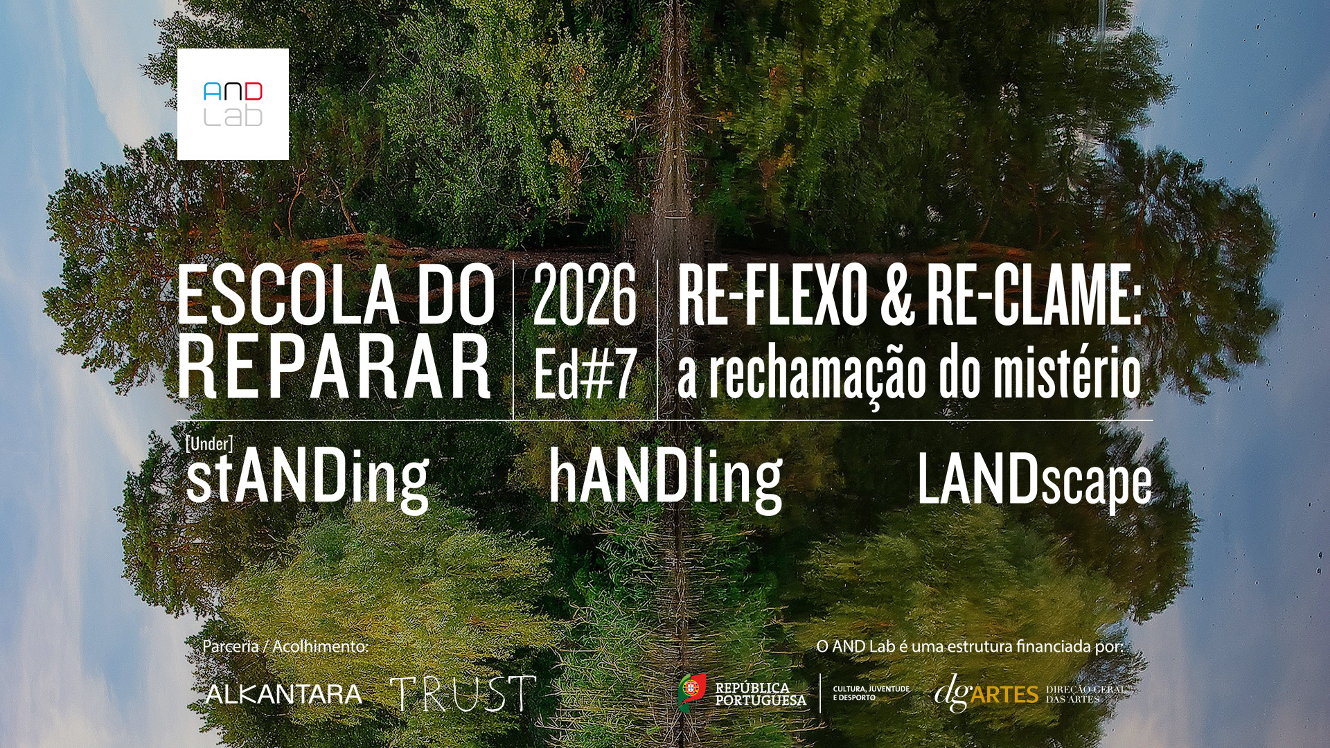 A Escola do Reparar Ed#7 — programa anual de (trans)formação, investigação e criação do AND Lab (Lisboa) abriu inscrições para a edição de 2026, que decorre entre março e agosto nas modalidades Artista Residente, Integral e Parcial, propondo um percurso vivencial e colaborativo, "onde práticas, jogos e rituais trabalham modos de reparação íntimo-colectiva, com atenção ao corpo-soma, à relação e ao comum".