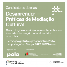 Realizado no âmbito do projeto europeu - Training Contact Zone - atualmente a decorrer em 7 países – o curso centra-se no conceito de zona de contacto enquanto espaço cultural e social onde diferentes (e por vezes opostas) perspetivas, experiências e narrativas são colocadas em contato, coexistência e diálogo.