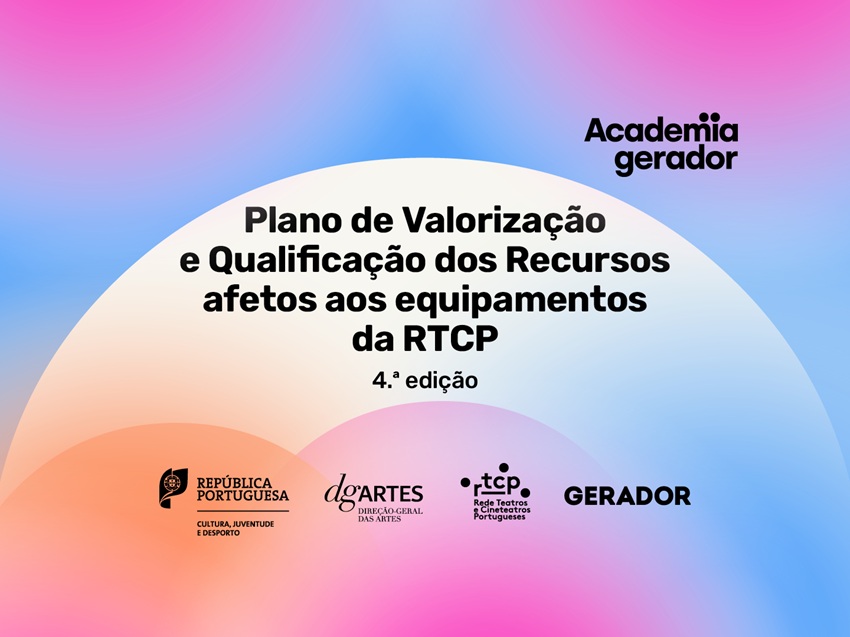 A 4ª edição do Plano de Valorização e Qualificação dos Recursos Humanos afetos aos equipamentos Rede de Teatro e Cineteatros Portugueses [RTCP], uma iniciativa da Direção-Geral das Artes (DGARTES), feita nesta edição em parceria com o Gerador, organiza-se em torno de sete módulos distintos: Conceção de Projetos Artísticos Participativos; Comunicação de Artes Performativas; Contratação; Imagem e Vídeo; Higiene, Segurança no Trabalho e Prevenção de Risco em Sala de Espetáculo; Produção; e Som. As formações decorrem presencialmente no norte, centro e sul do país, em várias cidades.