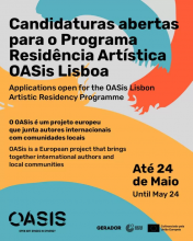 OASis é um projeto europeu que reúne autores internacionais com comunidades locais. Promovido pela Gerador em colaboração com o Goethe-Institut de Lisboa, o OASis Lisboa integra o projeto europeu OASis – Open Art Spaces in Synergy, que visa criar uma rede de espaços criativos abertos e gratuitos, com o objetivo de reduzir as barreiras de acesso ao mundo da arte.