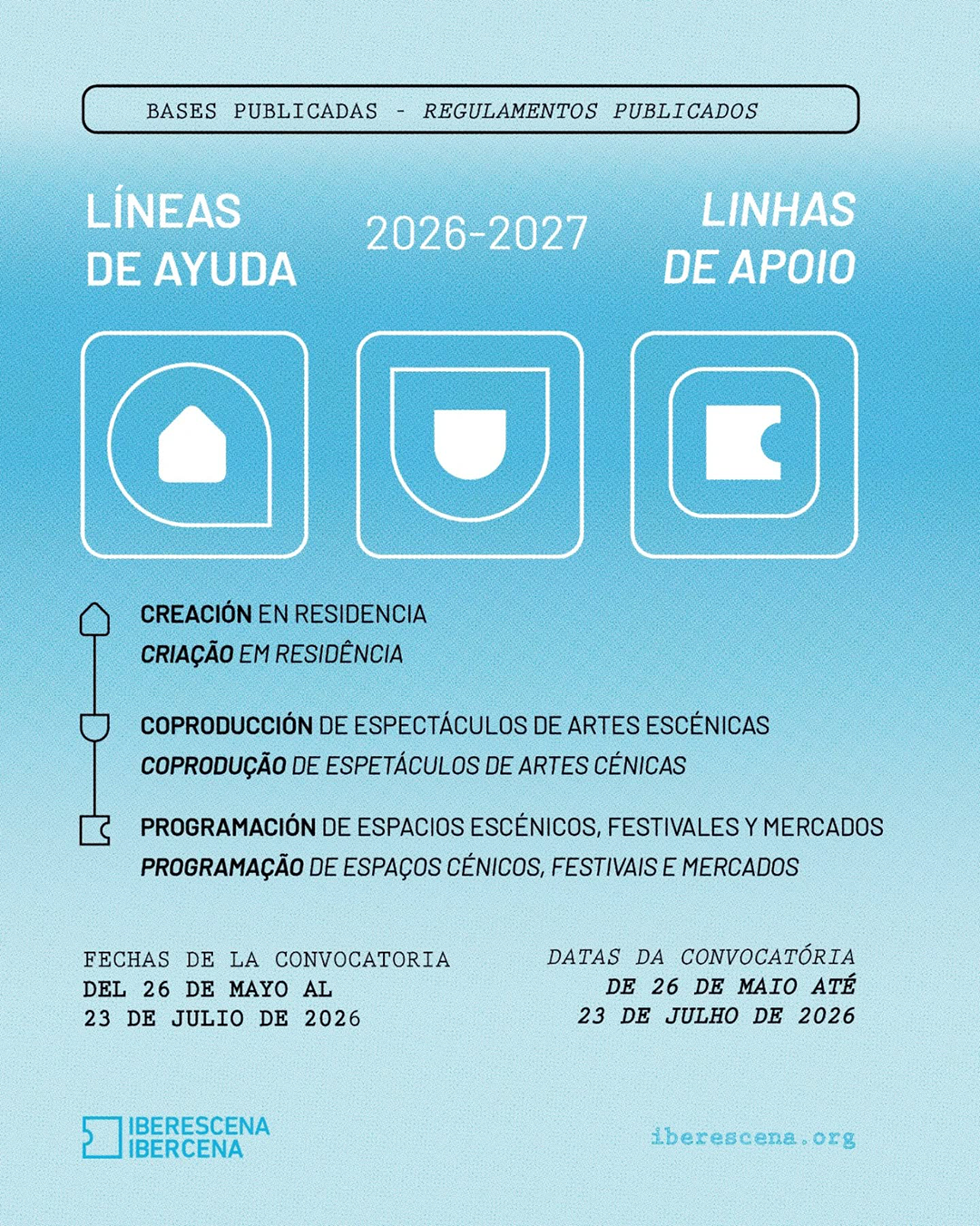 O Programa Ibercena já disponibilizou os regulamentos das próximas Linhas de Financiamento (2026–2027). As candidaturas decorrem entre 26 de maio e 23 de julho. Entre as novidades desta edição, dirigida a 17 Países-Membros do Programa, destacam-se a inclusão dos Mercados Cénicos na Linha de Apoio à Programação, a trajetória das pessoas e organizações candidatas como novo critério de apreciação, e a possibilidade de financiar despesas de artistas nacionais na Linha de Criação em Residência.